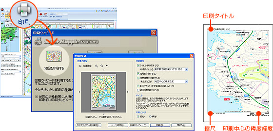 またはマップルホームボタンの印刷をクリックすると印刷ウィザードが起動します。