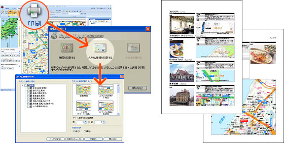 カスタム情報テキストの内容とその地図を印刷することができます。地図のみ、カスタム情報の内容のみの印刷も可能です。