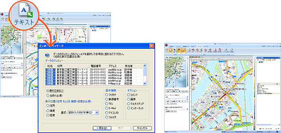 テキストファイル(*.csvや*.txtなど)で作られた住所録を取り込んで活用することができます。