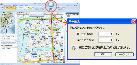 地図上でドラッグすると、円の形を自由に変えることができます。