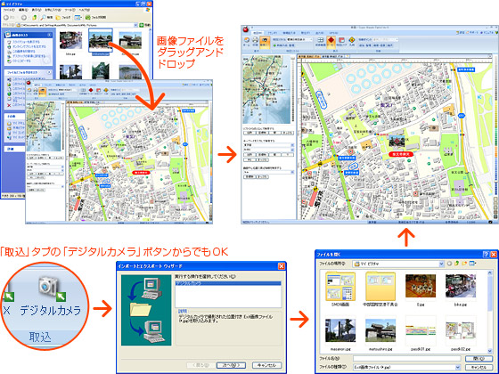 - ・写真画像をサムネイルとして地図上に表示できます。